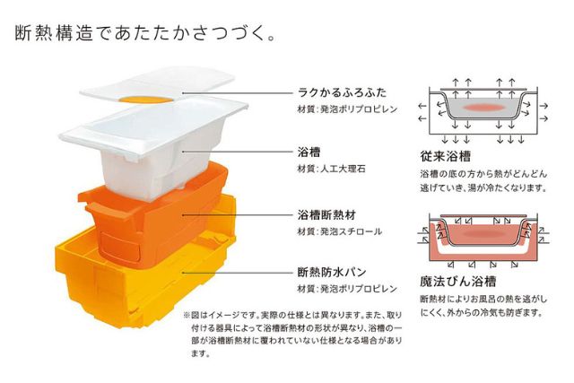 2. 追いだきを減らす「魔法びん浴槽」