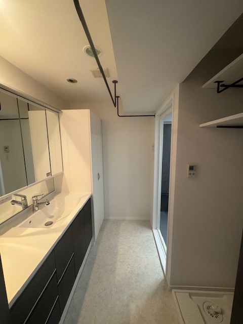 収納スペースやハンガーが掛けれるスペースがほしいというお客様の要望があり、アイアンバーをお勧めいたしました。