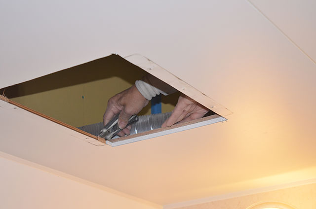 ①浴室換気乾燥機の開口寸法が既存より大きくなるため、開口を広げました。