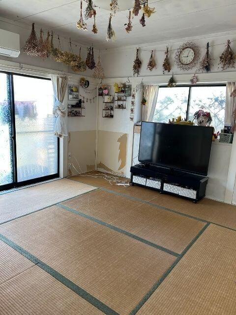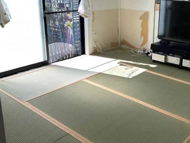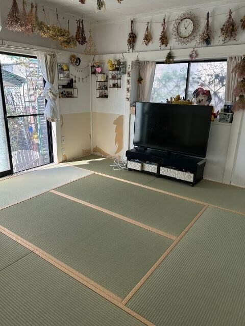 娘さんがお近くに引っ越して来られるのを機に、お孫さんが安心して過ごせるように和室の畳を国産のイグサ畳に取り替え。同時に他不具合も解消。