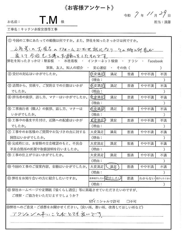 工事中、お客様のご質問やお気づきの点に対する回答はいかがでしたか?